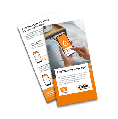 Ihre Patientinnen und Patienten können Sich die App unter dem Stichwort „ratiopharm Blasentrainer“ kostenlos in den App-Stores herunterladen.