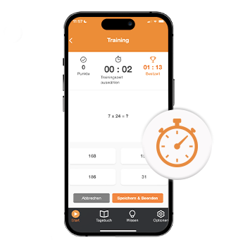 Neben der Dokumentation der Miktion ist auch das Blasentraining Teil der App. Quiz-Fragen lenken Betroffene vom Harndrang ab und helfen den Toilettengang hinauszuzögern. Eine integrierte Stoppuhr misst, wie lange das Training durchgehalten wurde und veranschaulicht Verbesserungen.