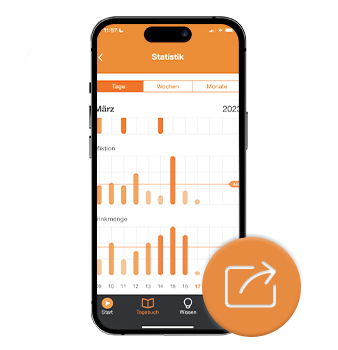 Dank leicht verständlicher Symbole können die Urin- und Trinkmengen ganz intuitiv, nebenbei und unauffällig in der App festgehalten werden. Durch individuelle Anzeigeeinstellungen ist es möglich, die Gesamt- oder durchschnittlichen Mengen darzustellen, um so den optimalen Überblick zu haben.