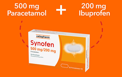 Nachdem das Duo Ibuprofen und Paracetamol in Deutschland zunächst in verschreibungspflichtiger Form angeboten wurde, ist seit 2022 auch eine Abgabe für die Selbstmedikation möglich. Mit Synofen von ratiopharm können Sie somit ein OTC-Kombipräparat empfehlen, das sich durch einen 3-fach-Effekt bei Schmerzen auszeichnet: stark, schnell und gut verträglich.